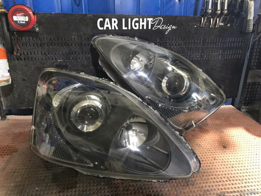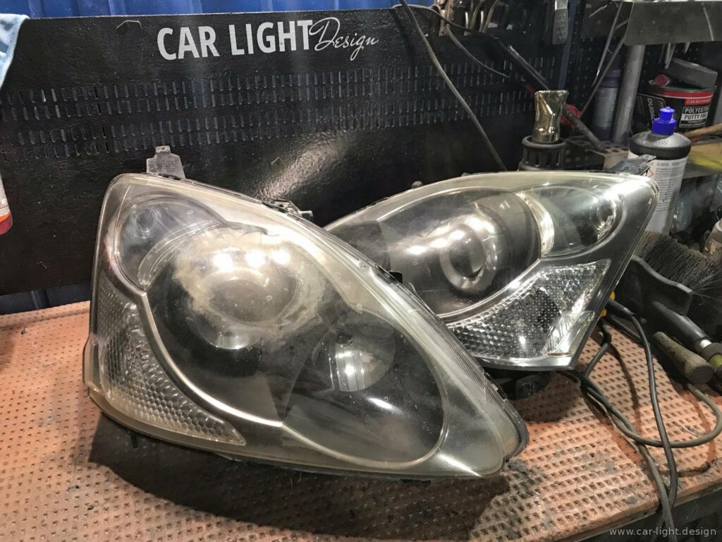 Our car lighting service in Kyiv received headlights from a Honda Civic 7, which had been removed from the car in advance. The owner immediately determined the list of work that needed to be done as part of the preventive maintenance and renewal of the optics.