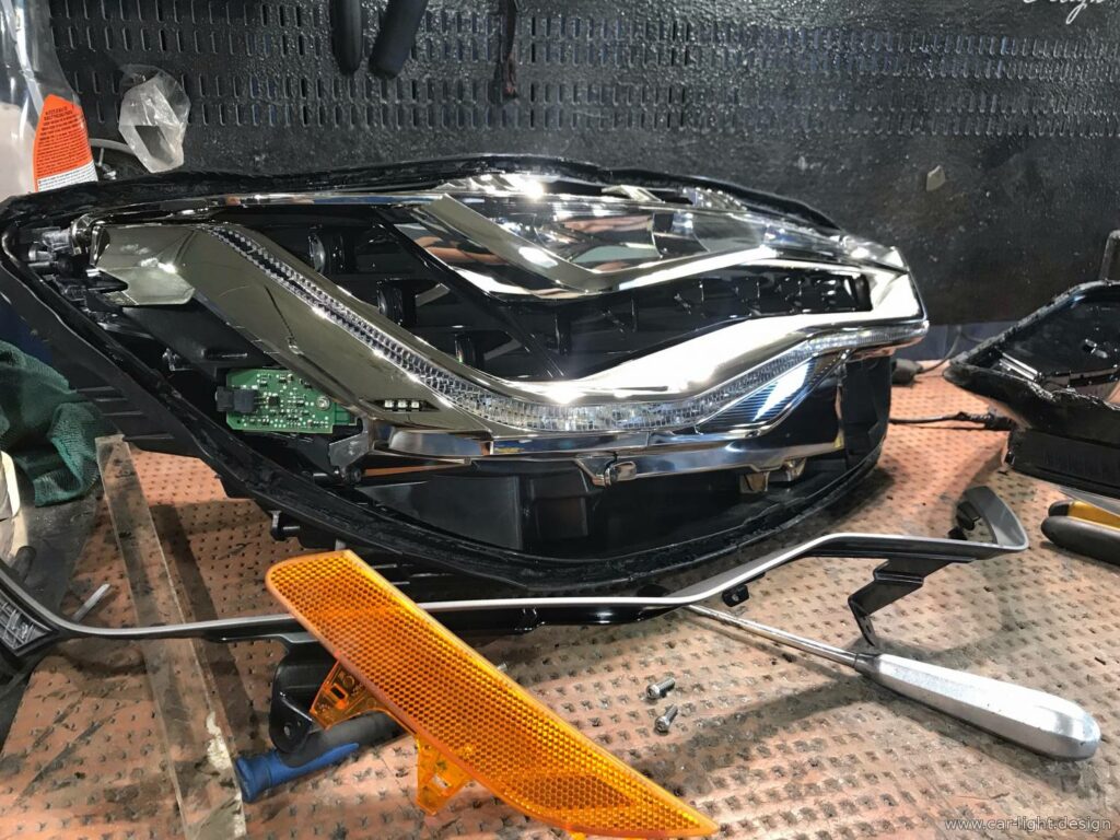 После завершения подготовительных работ было выполнено изменение цвета отражателя с оранжевого на серебристый. После полного высыхания окрашенного элемента фары собрали на новый герметичный шов.