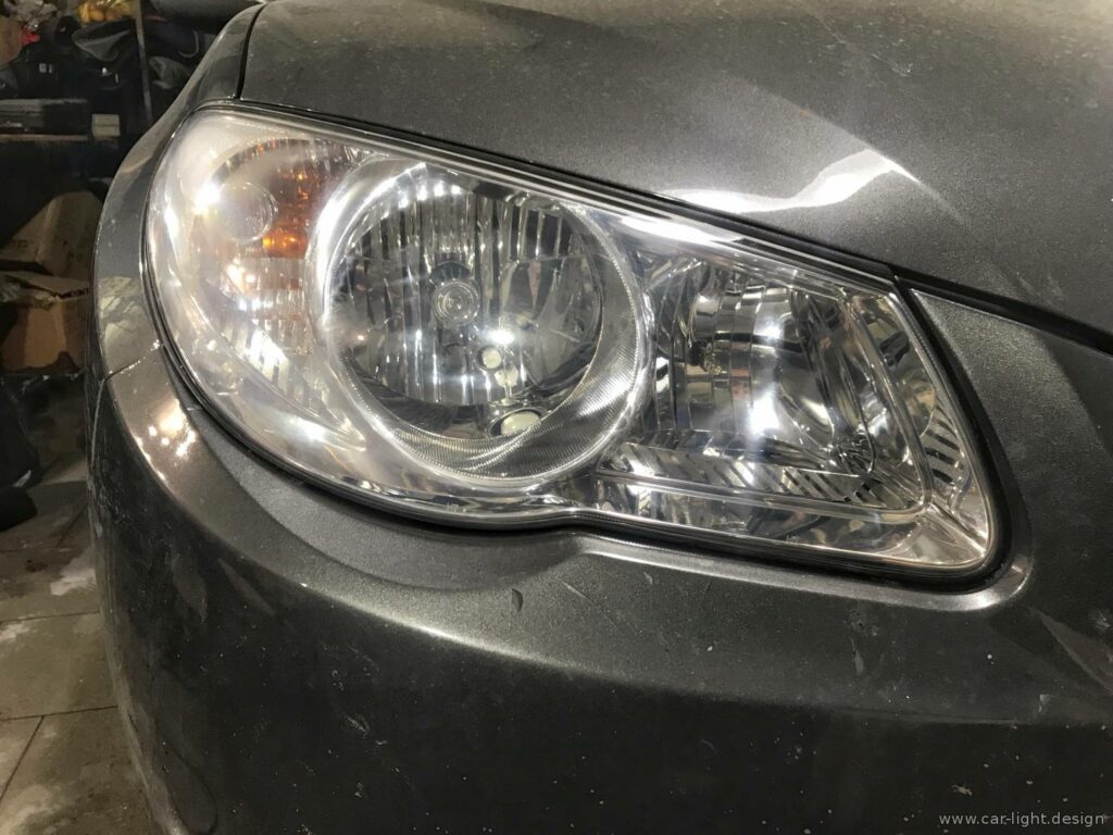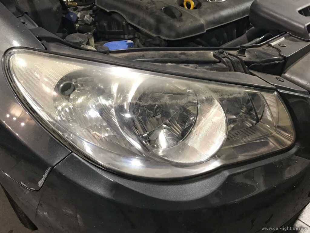 Для идеального восстановления фар Hyundai Accent в этом случае была бы необходима распаковка фар и внутренняя полировка стекла обеих фар. Однако такие работы значительно сложнее технически и финансово.