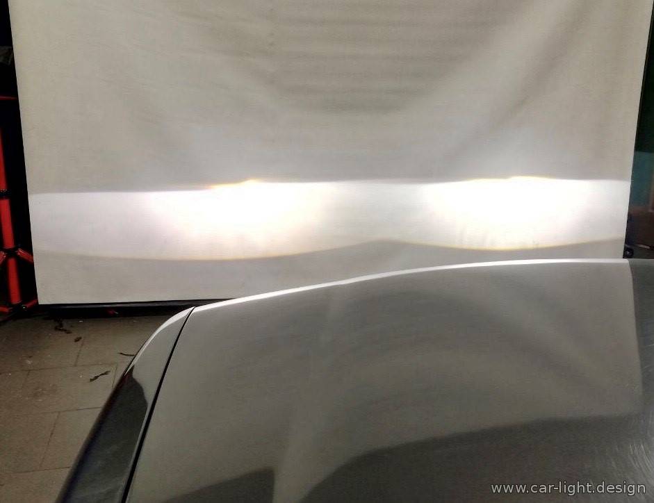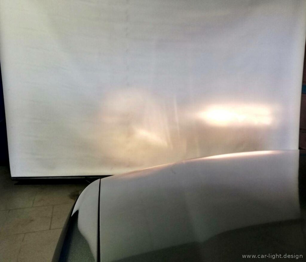 Мастера сервиса выполнили проекцию света на экран-полотно, чтобы объективно оценить состояние галогенной оптики.