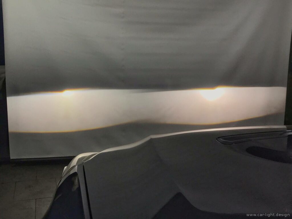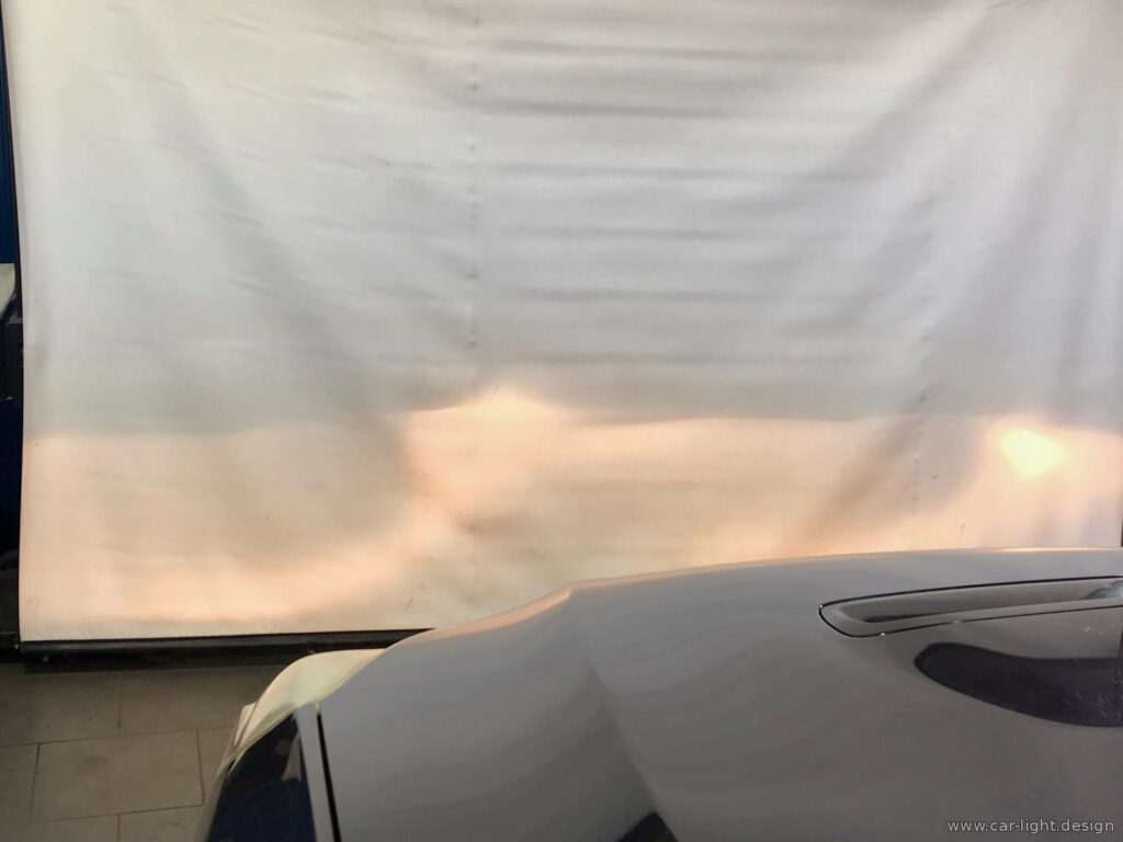 После регулировки в пределах стандартов DSTU и EEC специалисты повторно сделали проекцию света на экран-полотно. Разница между заводскими галогенными линзами и новыми биксеноновыми модулями стала очевидной — свет стал более равномерным, ярким и прогнозируемым на дороге.