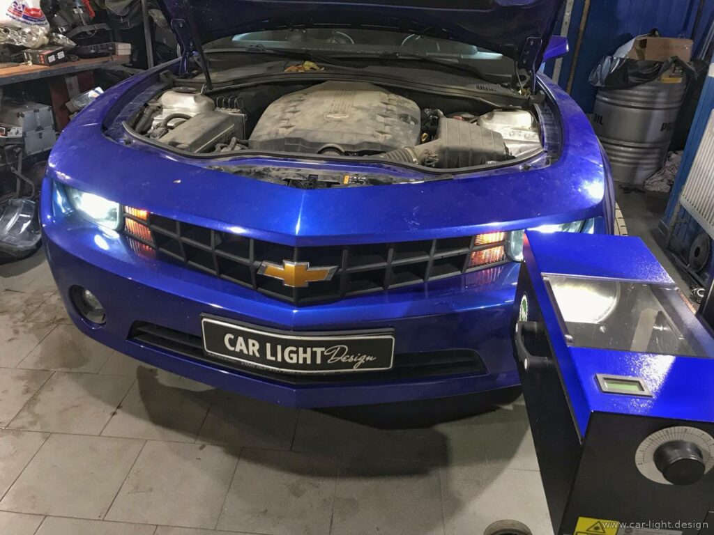 Є автомобілі, оптика яких модернізується не один раз. Chevrolet Camaro — саме такий випадок. Раніше штатна галогенна оптика вже проходила переобладнання на бі-ксенон, але з часом світло знову втратило яскравість. Саме погіршення якості освітлення і стало причиною чергової переробки фар із додаванням індивідуальних елементів тюнінгу.