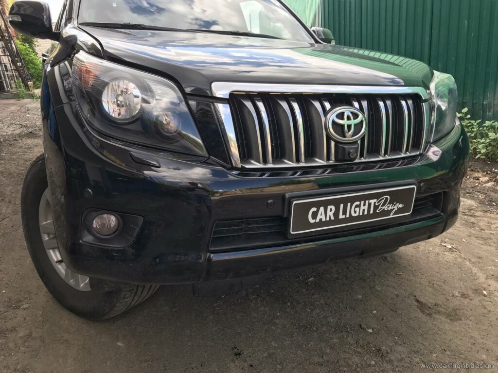 Після виконаних робіт оптика Toyota Prado 150 отримала зовсім інший вигляд. Чорні матові маски прибрали надлишковий блиск хрому, зробили фари більш зібраними та гармонійними з чорним кузовом автомобіля.