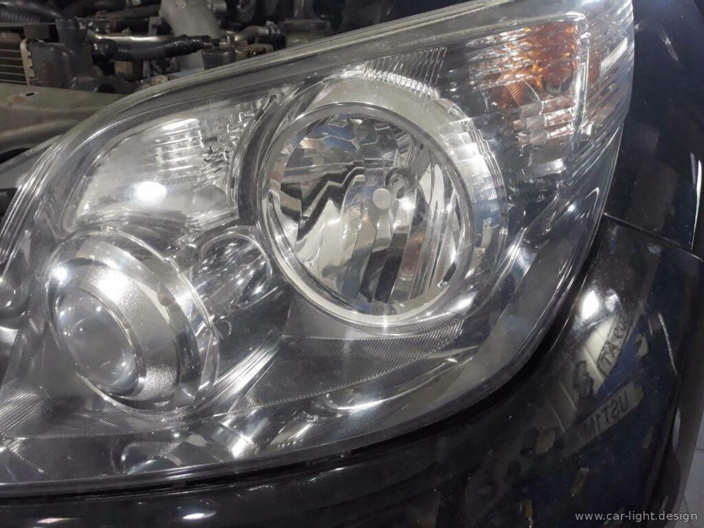 До нашого сервісу автосвітла у Києві звернувся власник Toyota Prado 150 з бажанням змінити зовнішній вигляд фар. Хромовані елементи всередині оптики надто контрастували з чорним кольором кузова та, за словами клієнта, «різали око». Оптимальним рішенням у цій ситуації стала покраска масок фар у чорний матовий колір, яка дозволяє зробити оптику більш стриманою, сучасною та гармонійною з загальним стилем автомобіля.
