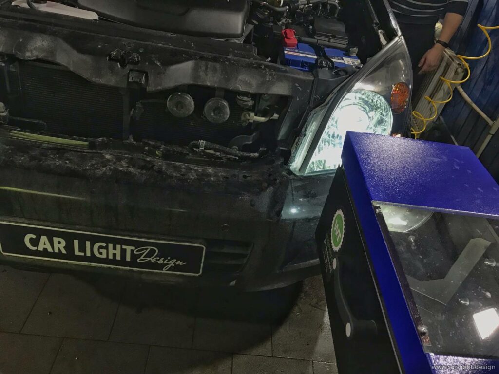 Після монтажу автомобіль вирушив на регулювальний стенд. Тут фахівці виставили параметри світлотіньової межі та відкоригували напрямок світлового потоку, щоб водій отримав комфортне й безпечне освітлення дороги.