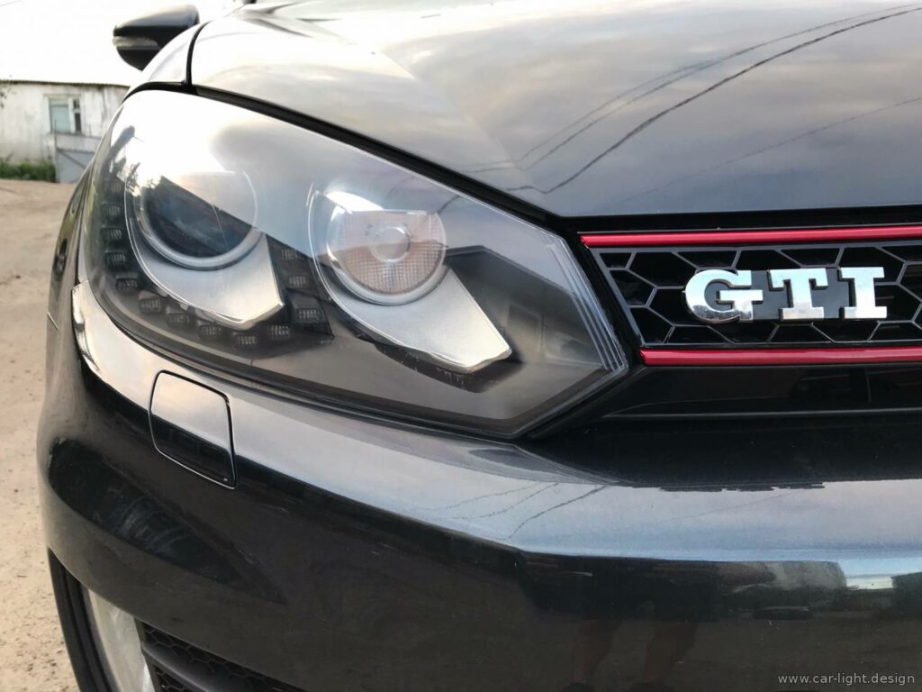 Після полірування та оклеювання плівкою фари Volkswagen Golf GTI повністю змінилися. Раніше пошкоджене скло знову стало прозорим, а оптика набула заводського блиску. Світло стало чистішим, а зовнішній вигляд автомобіля — охайним і доглянутим.