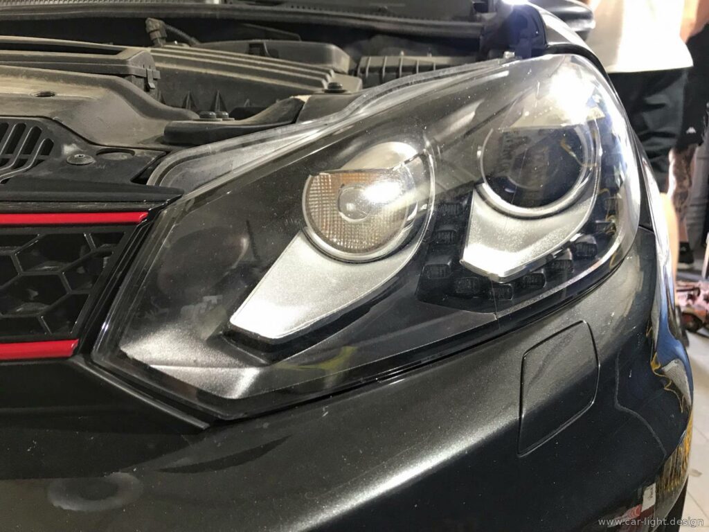 Водночас у таких фар є і слабкі сторони. Основна з них — захисний лак, який з часом може руйнуватися під впливом ультрафіолету, хімії та перепадів температур. Саме це і стало причиною звернення власника Volkswagen Golf GTI.