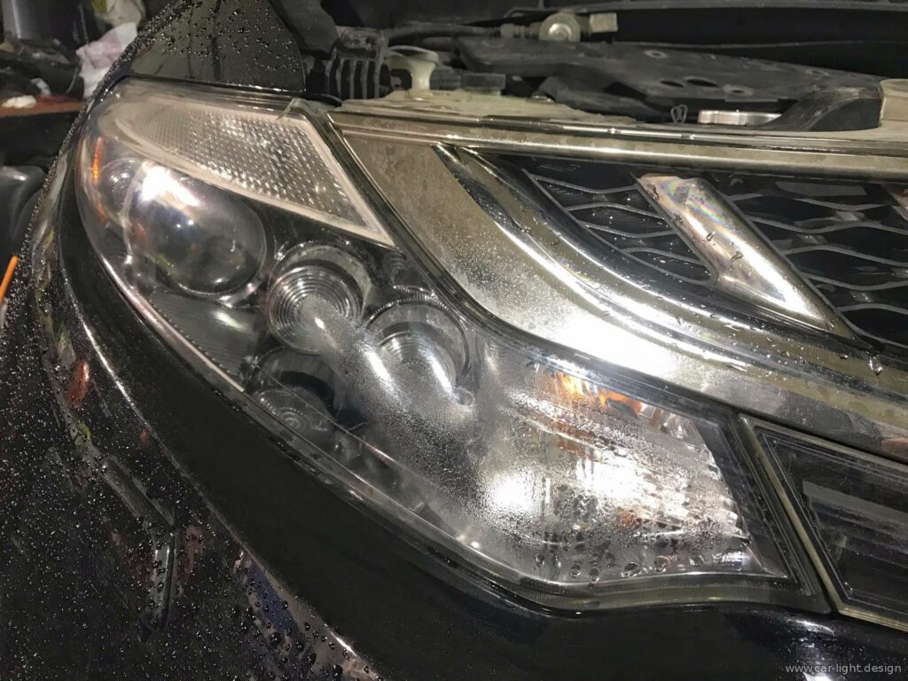 Після демонтажу фар стало видно причину запотівання — дрібні тріщини на склі. Через них волога потрапляла всередину, руйнуючи внутрішні елементи.