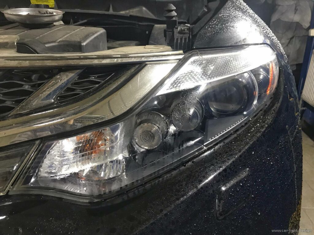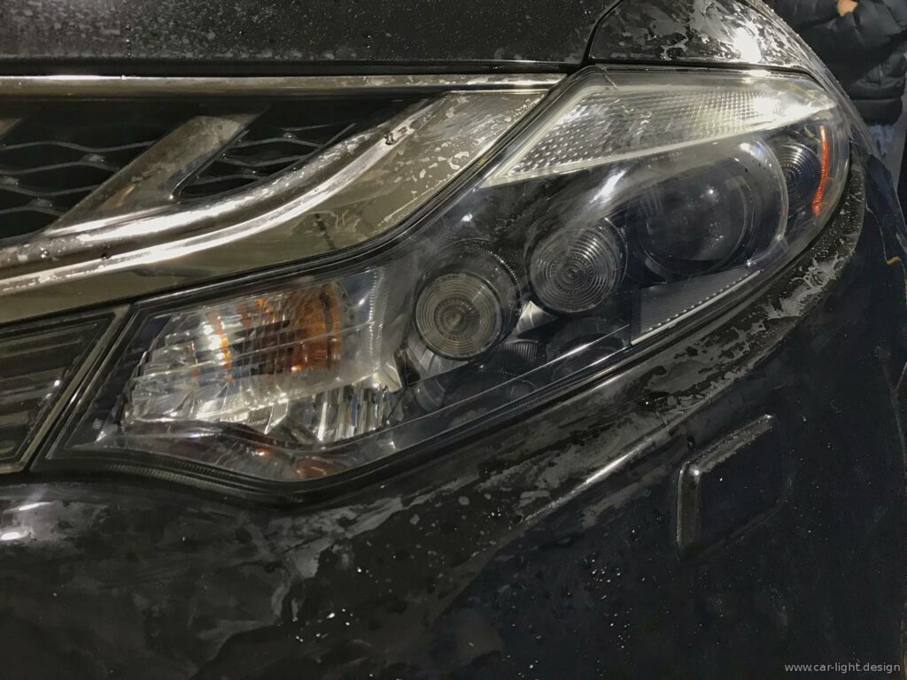 Завершальний косметичний етап — полірування скла фар для відновлення прозорості. Потім ми нанесли захисну поліуретанову плівку SunTek, яка збереже результат на тривалий час, захищаючи від УФ-випромінювання, подряпин і хімічних реагентів.