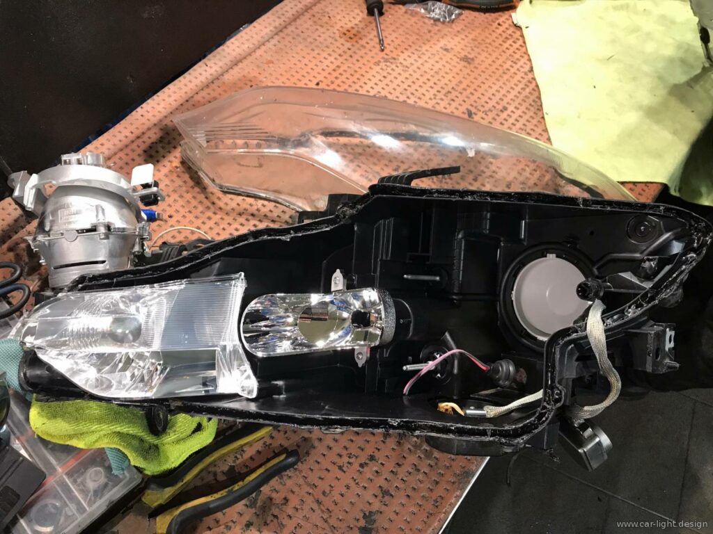 Ключова проблема полягала у відбивачах штатних лінз 2.5 дюйма. Після розбирання ми побачили, що вони вигоріли й більше не могли виконувати свою функцію. Жодне очищення тут уже не допомогло.