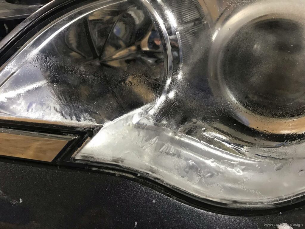 Фару зняли для діагностики. Після виявлення причини запотівання оптику розібрали, висушили всі внутрішні елементи та очистили від слідів вологи й пилу. Потім фару зібрали на новий герметичний шов, що гарантує захист від повторного утворення конденсату.