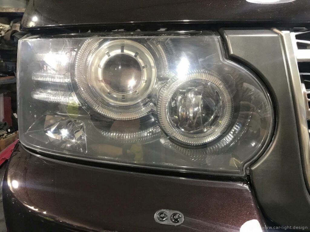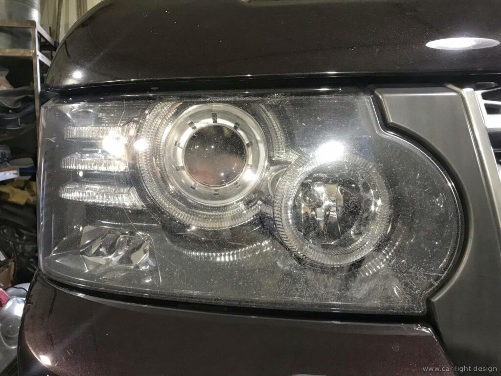 До нашого сервісу автосвітла у Києві приїхав Range Rover Vogue, оптика якого потребувала косметичного відновлення. Скло фар втратило блиск і прозорість, а одна з фар головного світла мала більш серйозну проблему — постійне запотівання зсередини. Наявність конденсату всередині фари негативно впливає на всі внутрішні елементи оптики. Волога поступово руйнує відбивачі, лінзи та електронні компоненти, що з часом може призвести до повної втрати світла або виходу фари з ладу.