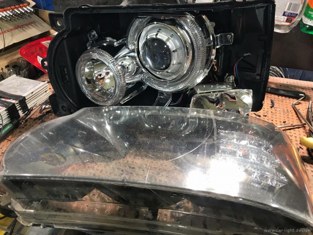 Після успішного тестування та встановлення оптики на автомобіль обидві фари були підключені й піддані зовнішньому відновленню. Скло фар відшліфували та відполірували, прибравши помутніння та дрібні подряпини.