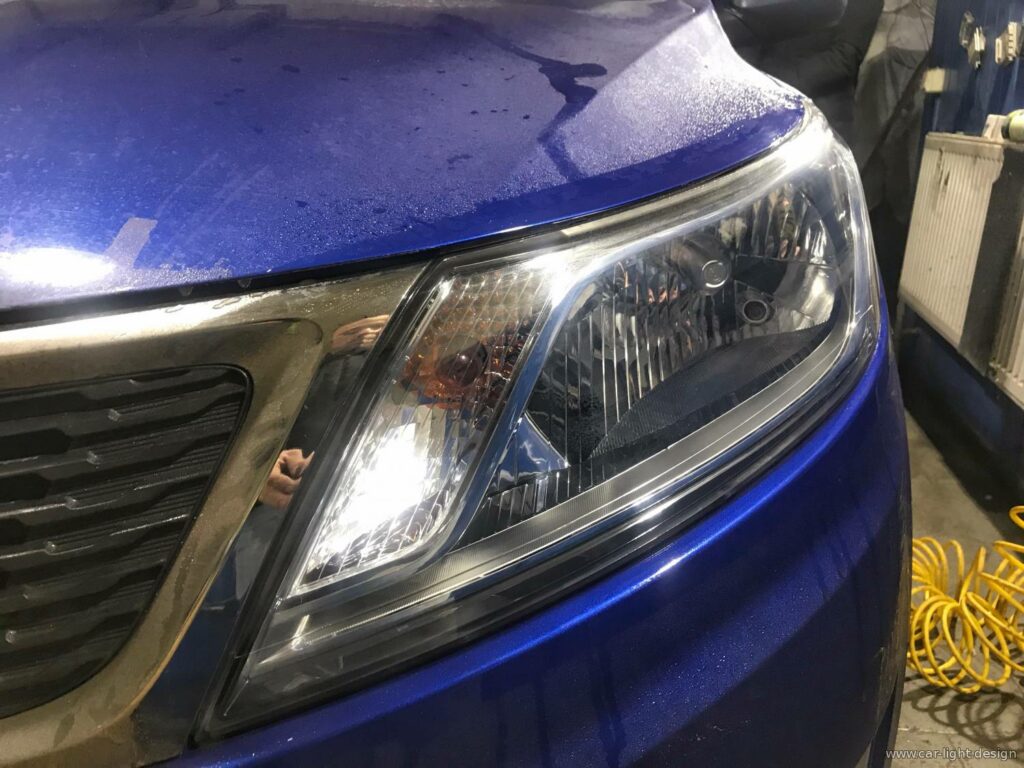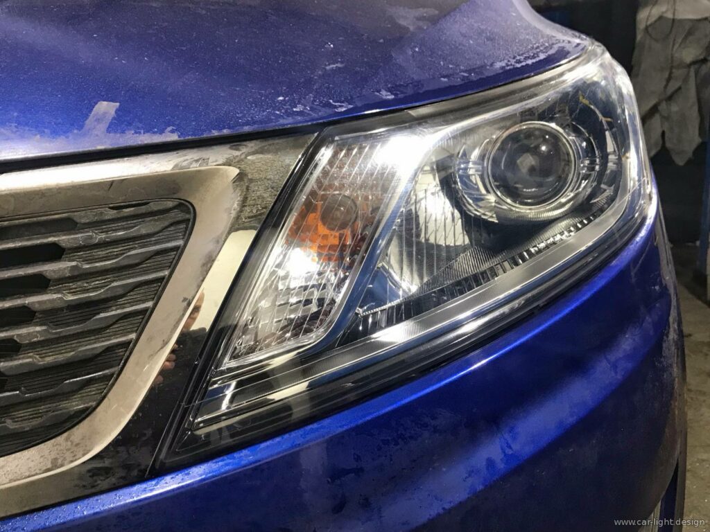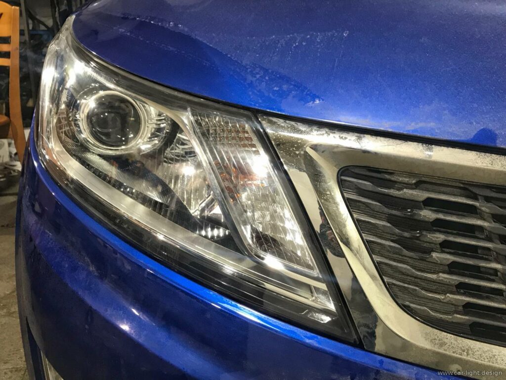 2000 грн.Автомобіль Kia Rio має заводську галогенну оптику, яка візуально виглядала ще непогано, але світ фар уже не забезпечував нормальної видимості дороги вночі. Заміна ламп не дала результату — світловий потік залишався слабким через втрату функціоналу відбивачів.