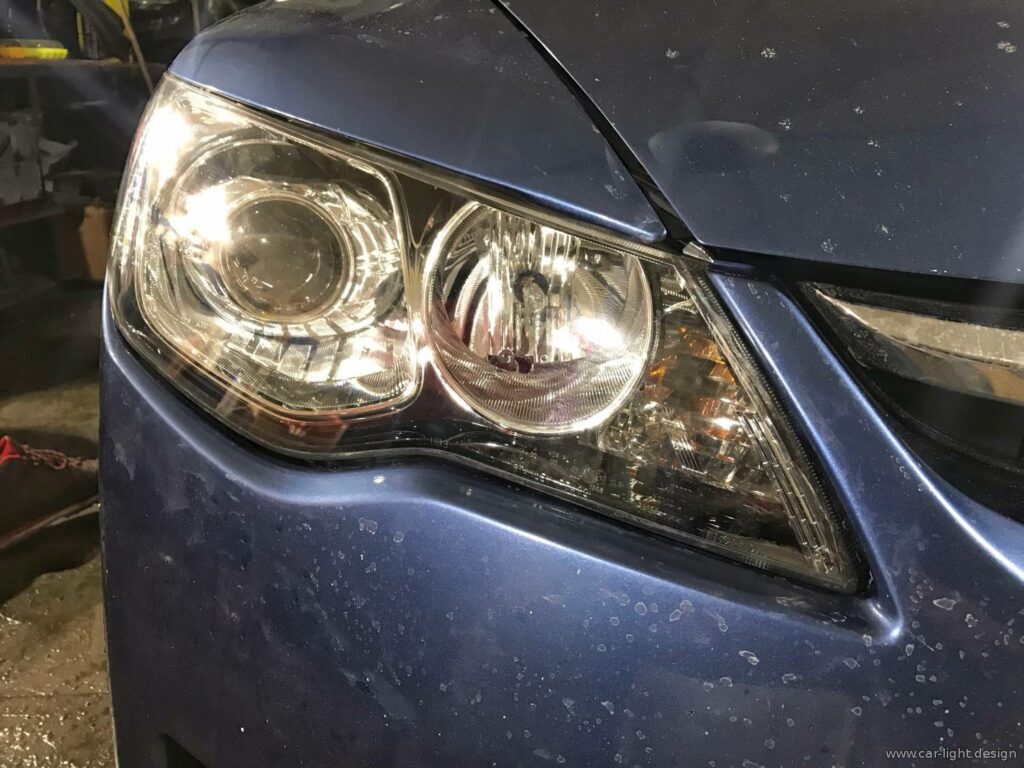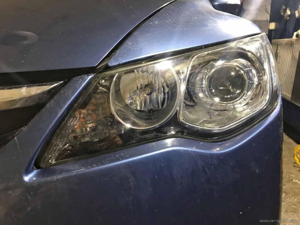 Фари були демонтовані та розібрані. Внутрішні елементи ретельно промили від пилу та бруду, накопиченого за роки експлуатації. Потім спеціалісти сервісу встановили нові бі-ксенонові лінзи 3.0 дюйма та зібрали оптику на новий герметичний шов.