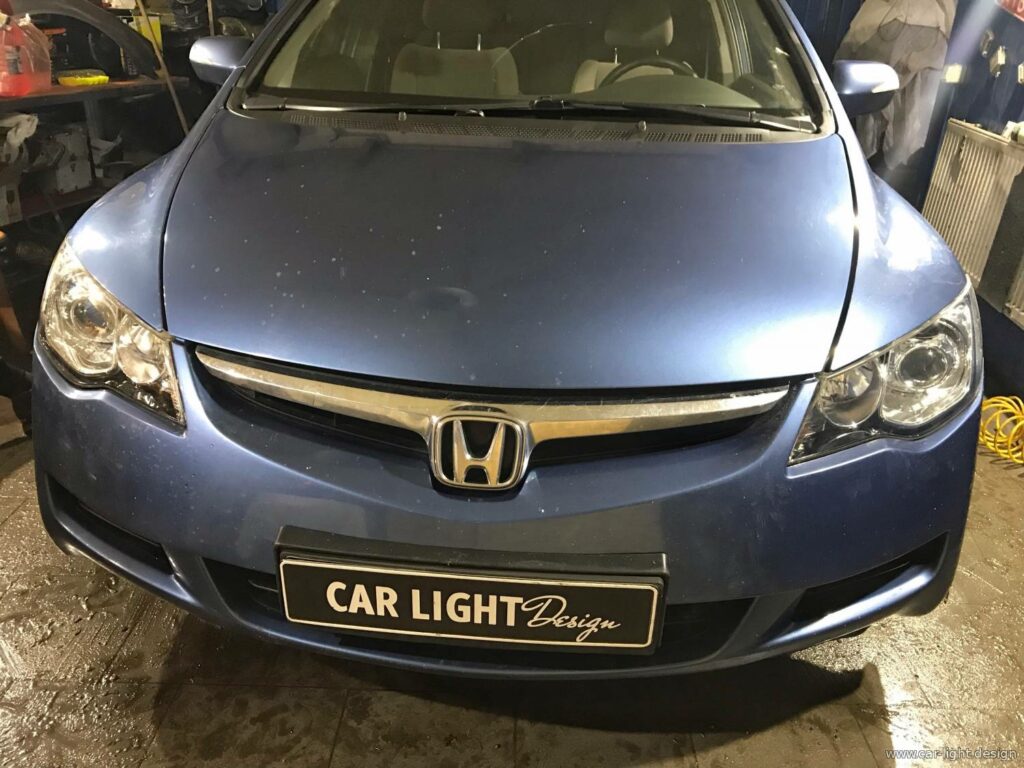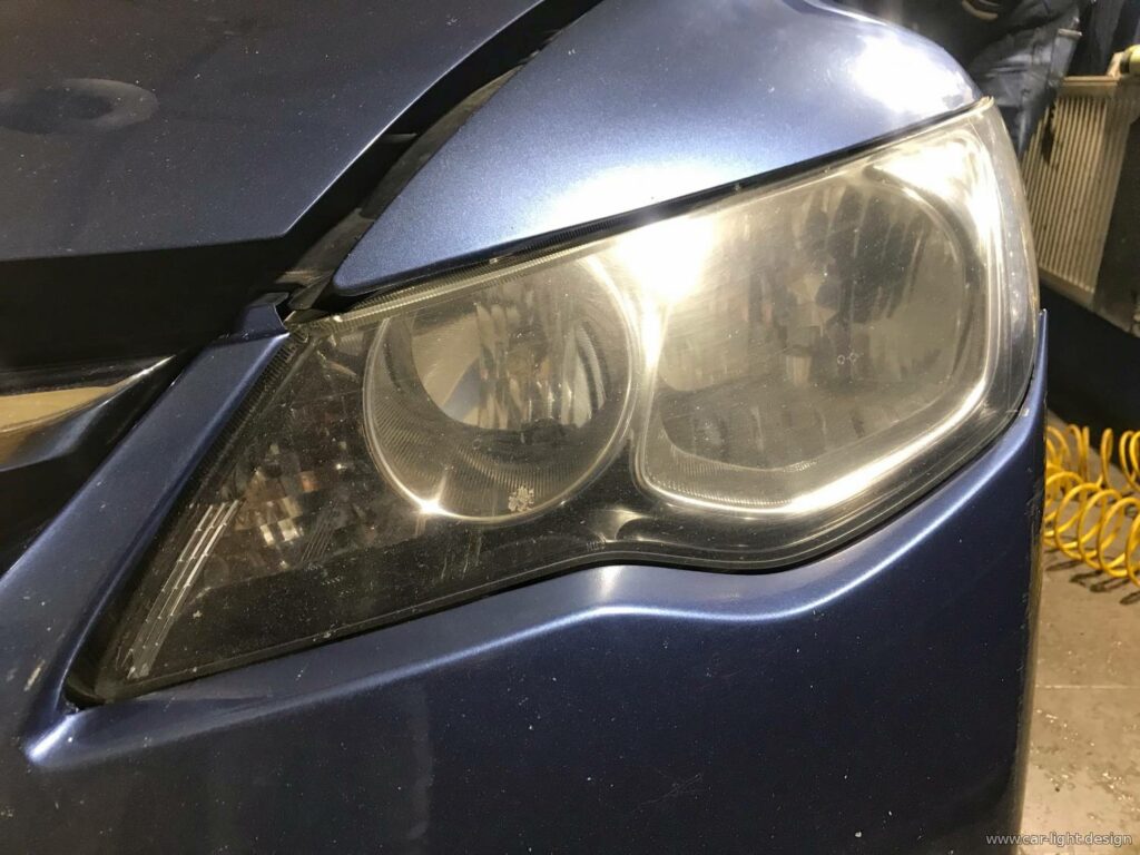 2000 грн.У сервіс Car Light Design звернувся власник Honda Civic 4D, у якого з часом світ фар став помітно гіршим. Заміна ламп не дала результату, а одна з фар зовсім перестала світити. До того ж скло оптики мало значні сліди експлуатації й потребувало полірування.