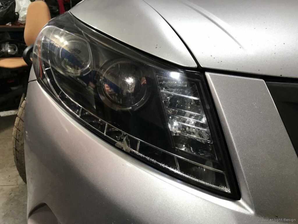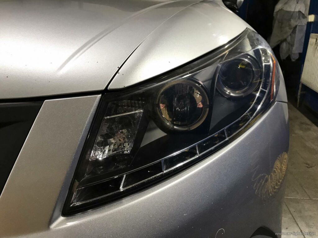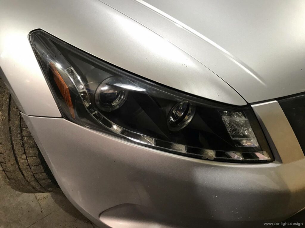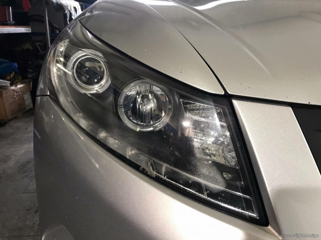 Детальніше Встановлення лінз у фари автомобіляПереділка ближнього світла Honda Accord 8: заміна галогенових модулів на біксенонові з повним відновленням оптики.